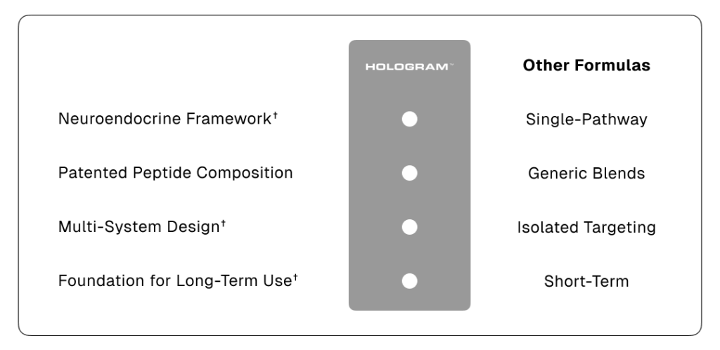 HOLOGRAMโข is a full-spectrum peptide complex designed to support overall vitality across the body.